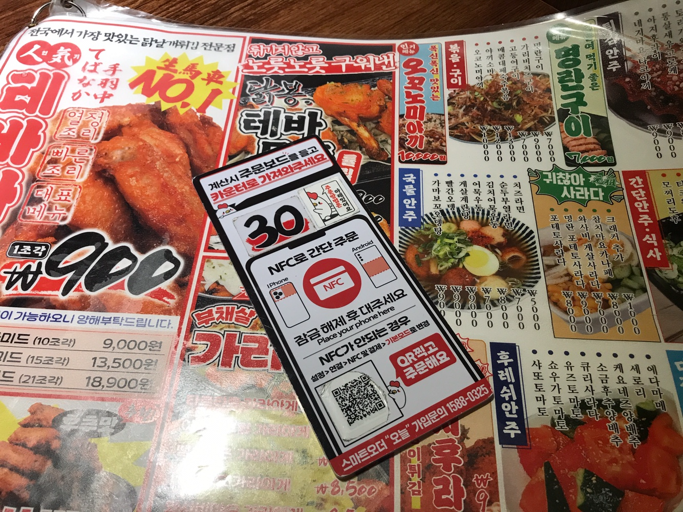 만약에 NFC가 잘 되지 않을 경우에는 설정>연결>NFC 및 결제>기본모드로 변경하여 사용하라고 안내되어 있었습니다. 그리고 QR코드를 찍고 주문하라고 덧붙여 있었습니다.