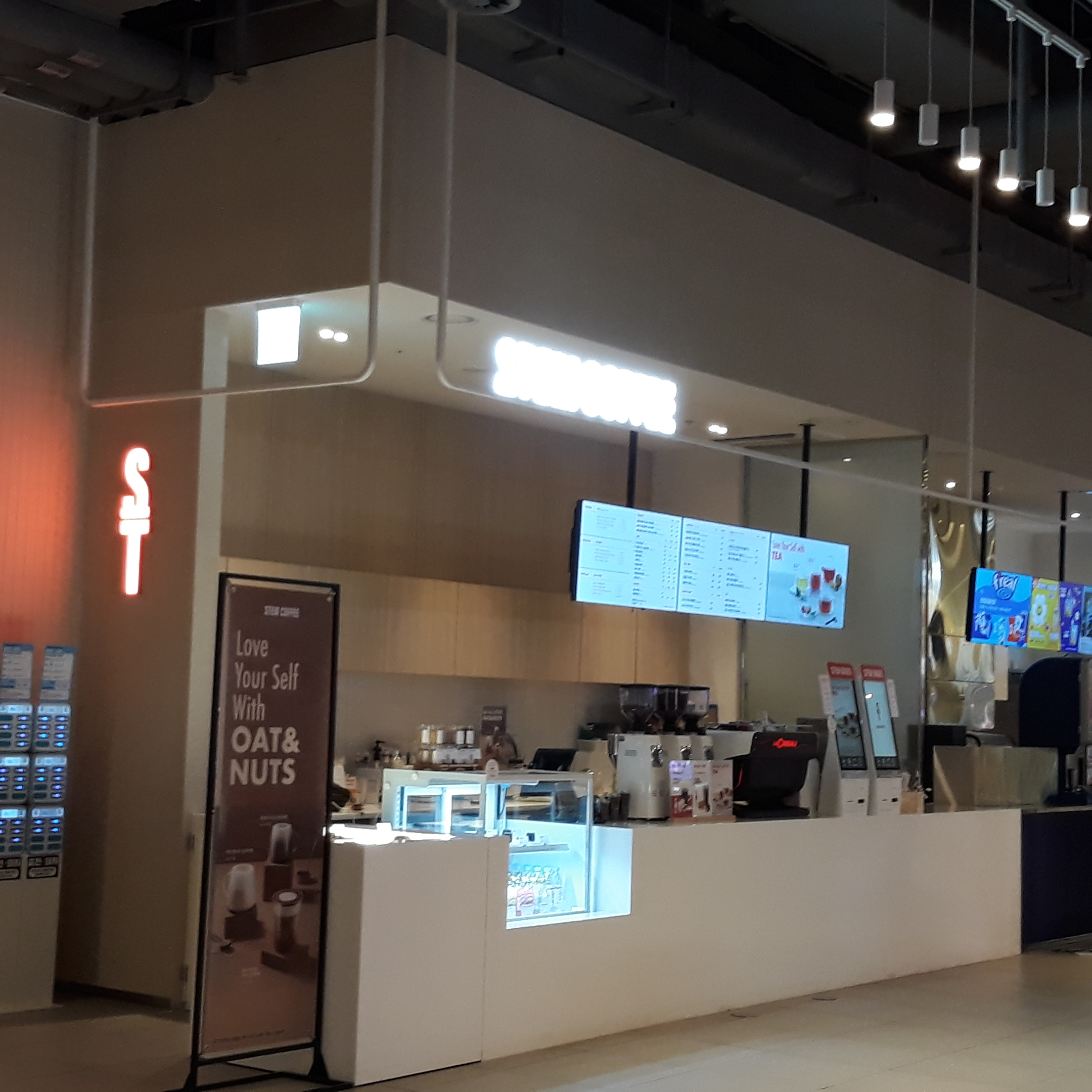 스템커피 수원AK플라자 6층 메가박스 안에 자리잡은 스템커피, 처음 만난 스템커피. 메가박스로 영화를 보러 가셨다가 메가박스 앞에서 영화를 보면서 마시기에도 좋은 스템커피랍니다.