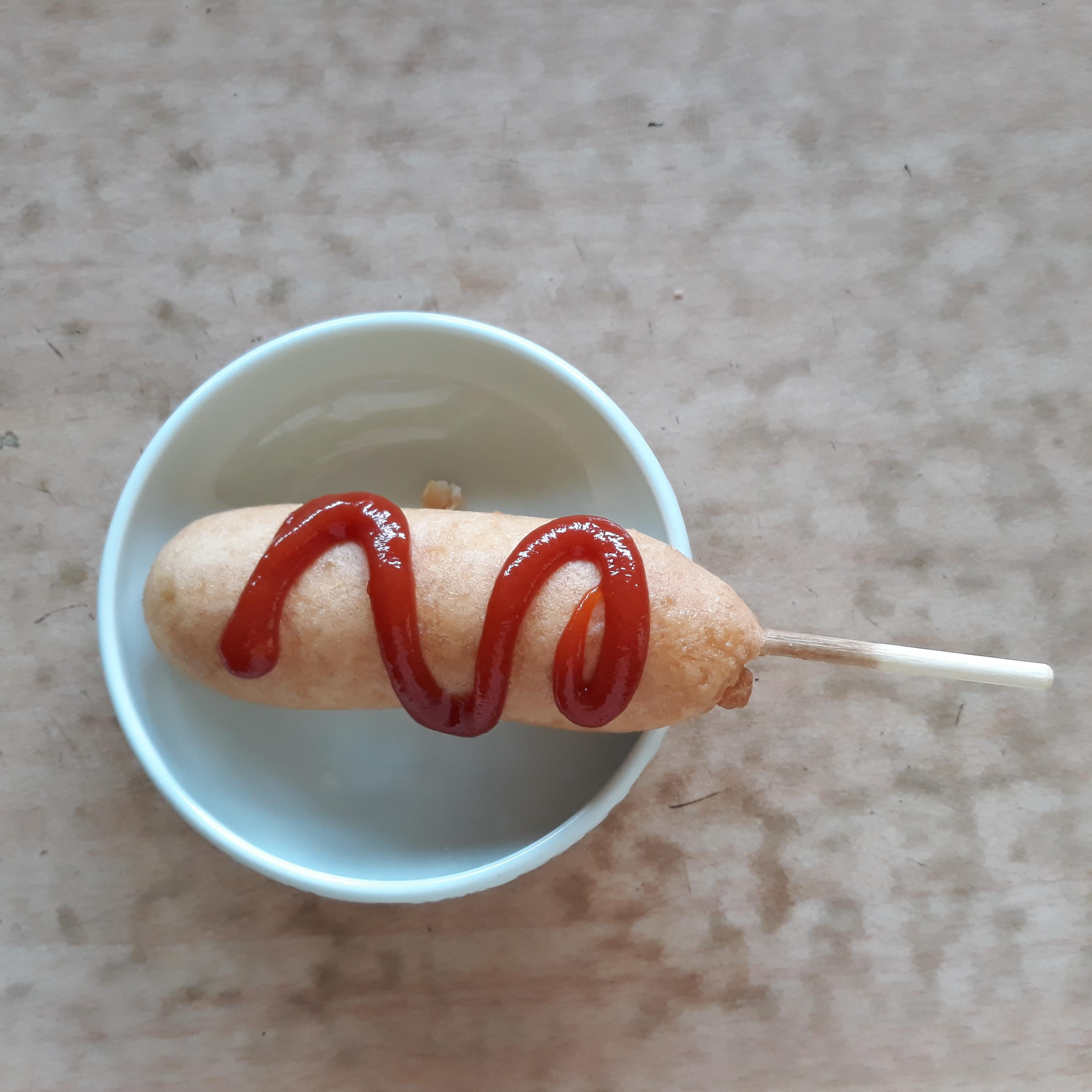 핫도그와 케첩 아, 이제 충분히 데워진 것 같았습니다. 조리 방법에는 50초~1분으로 나와 있지만 1분 30초 정도가 충분할 것 같습니다.