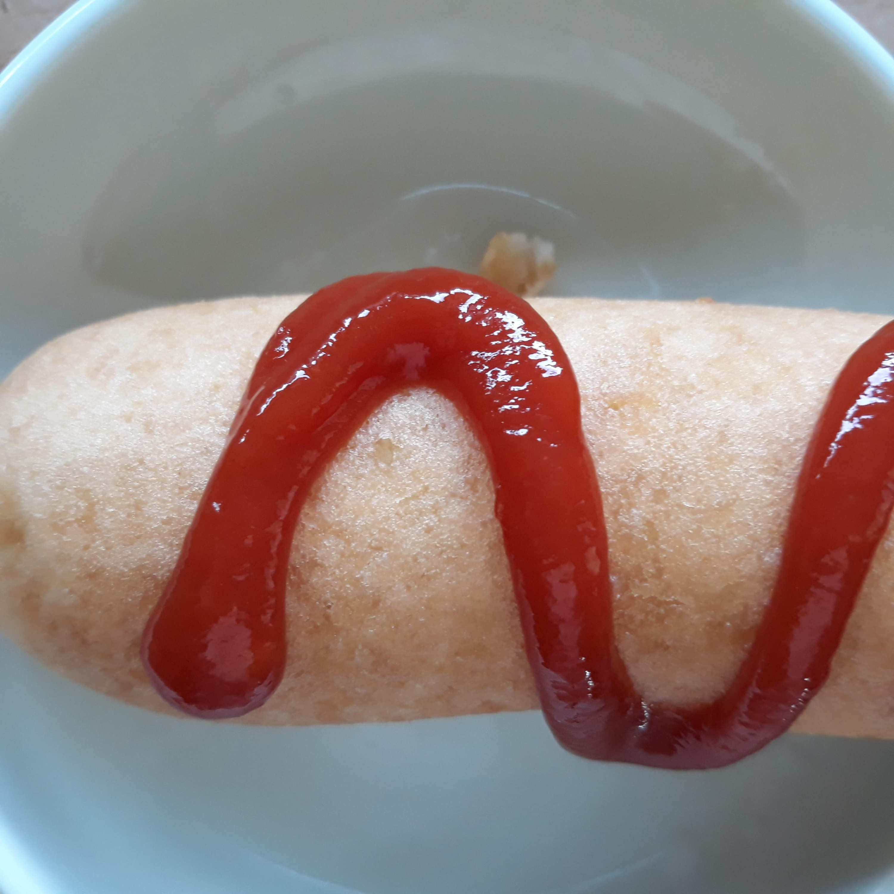 또 뭔가가 빠진 것 같았습니다. 토마토케첩을 깜빡했습니다. 냉장고에서 얼른 토마토케첩을 꺼내 충분히 조리된 핫도그 위에 조심스럽게 발랐습니다.