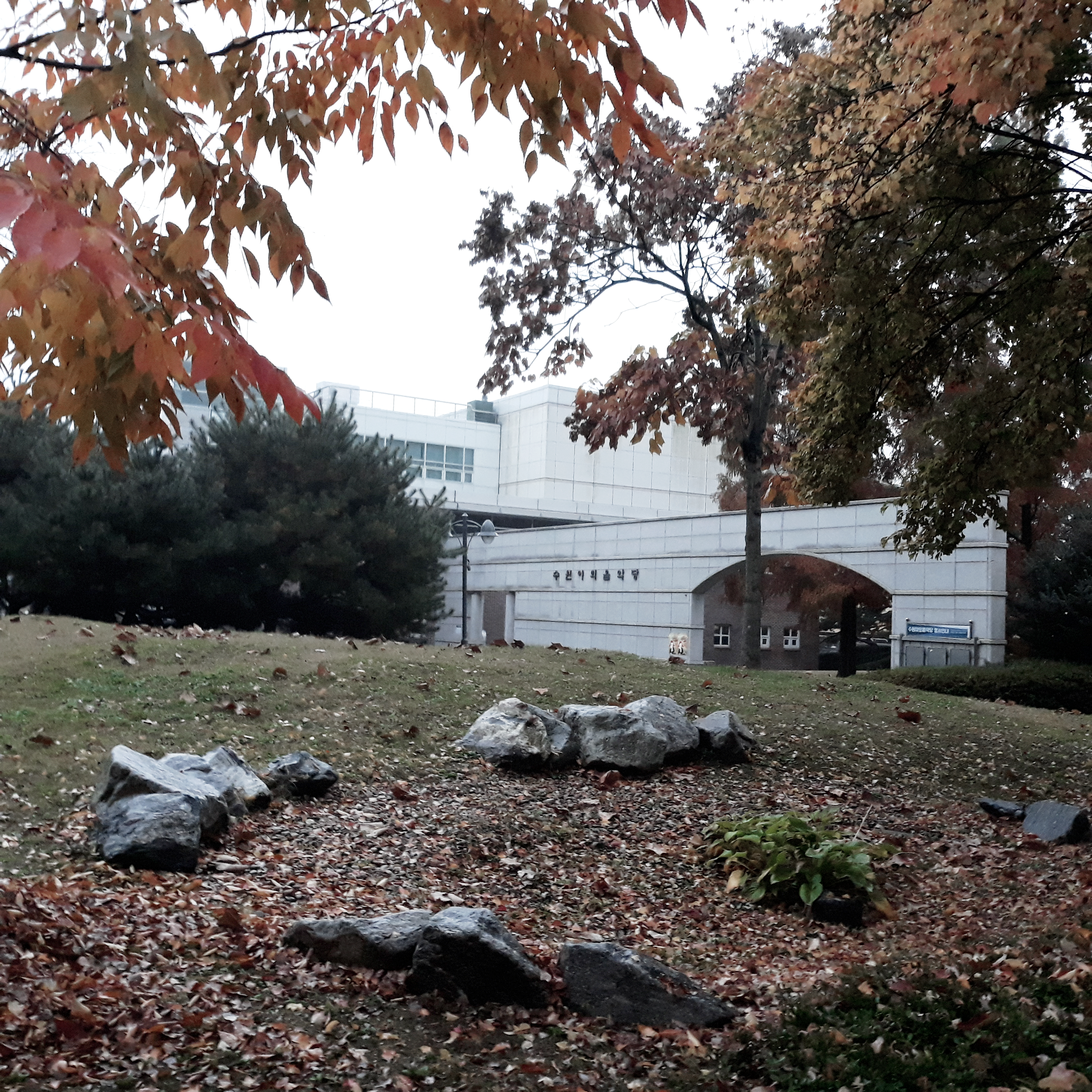 비가 부슬부슬 내리는 수원의 거리를 걷다가 멋있는 장소를 발견했습니다. 마치 먼 나라에 온 것처럼 가을 풍경이 아름다웠습니다. 그냥 지나칠 수가 없어서 한번 가까이 다가가 보았습니다. 그곳은 바로 수원야외음악당이랍니다.