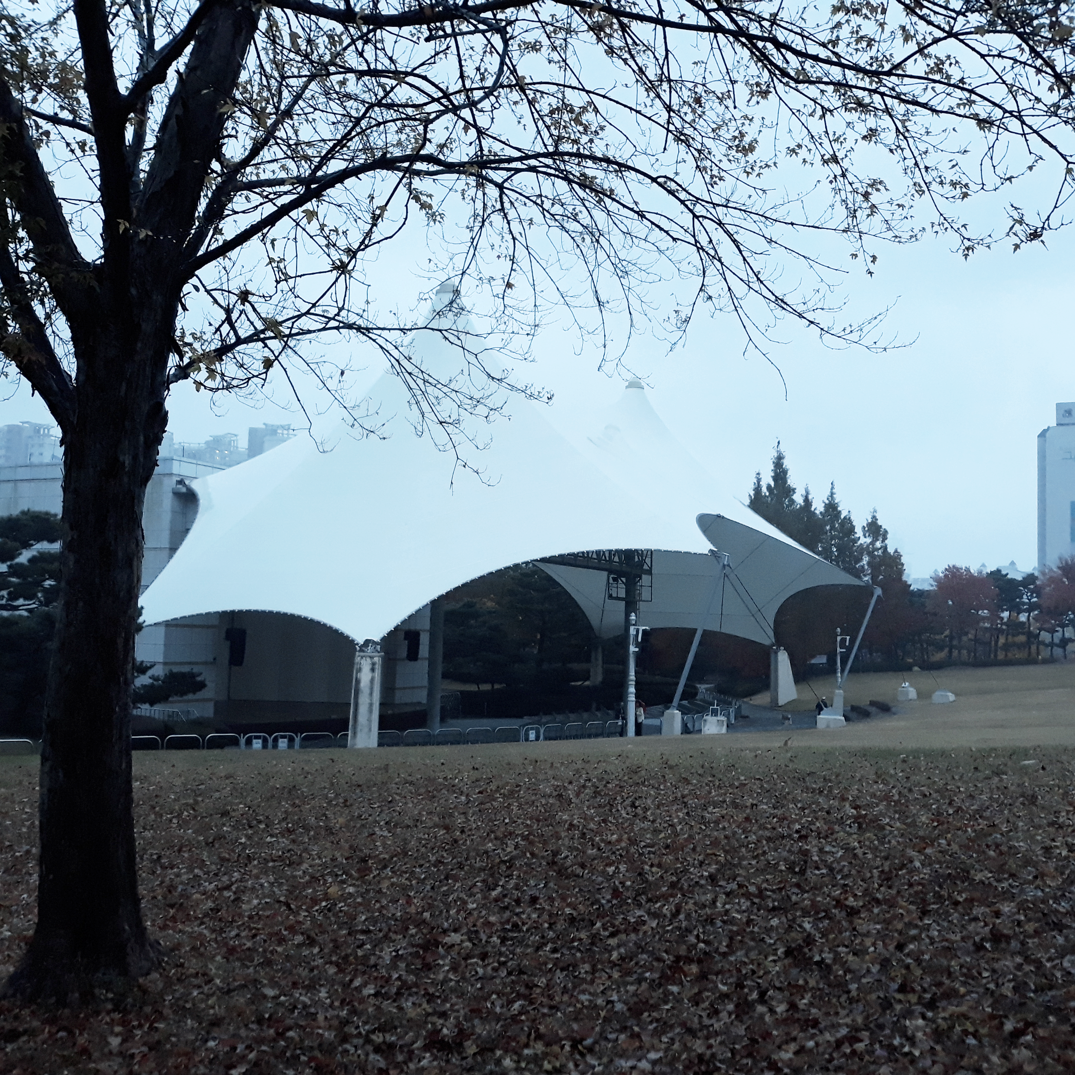 수원야외음악당 건물 너무 먼 쪽만 바라보았나 봅니다. 가까운 곳을 보니 하얀 천장으로 예술적으로 만들어져 있는 장소가 보였습니다. 아, 그럼 저곳이 야외음악당인가 봅니다.