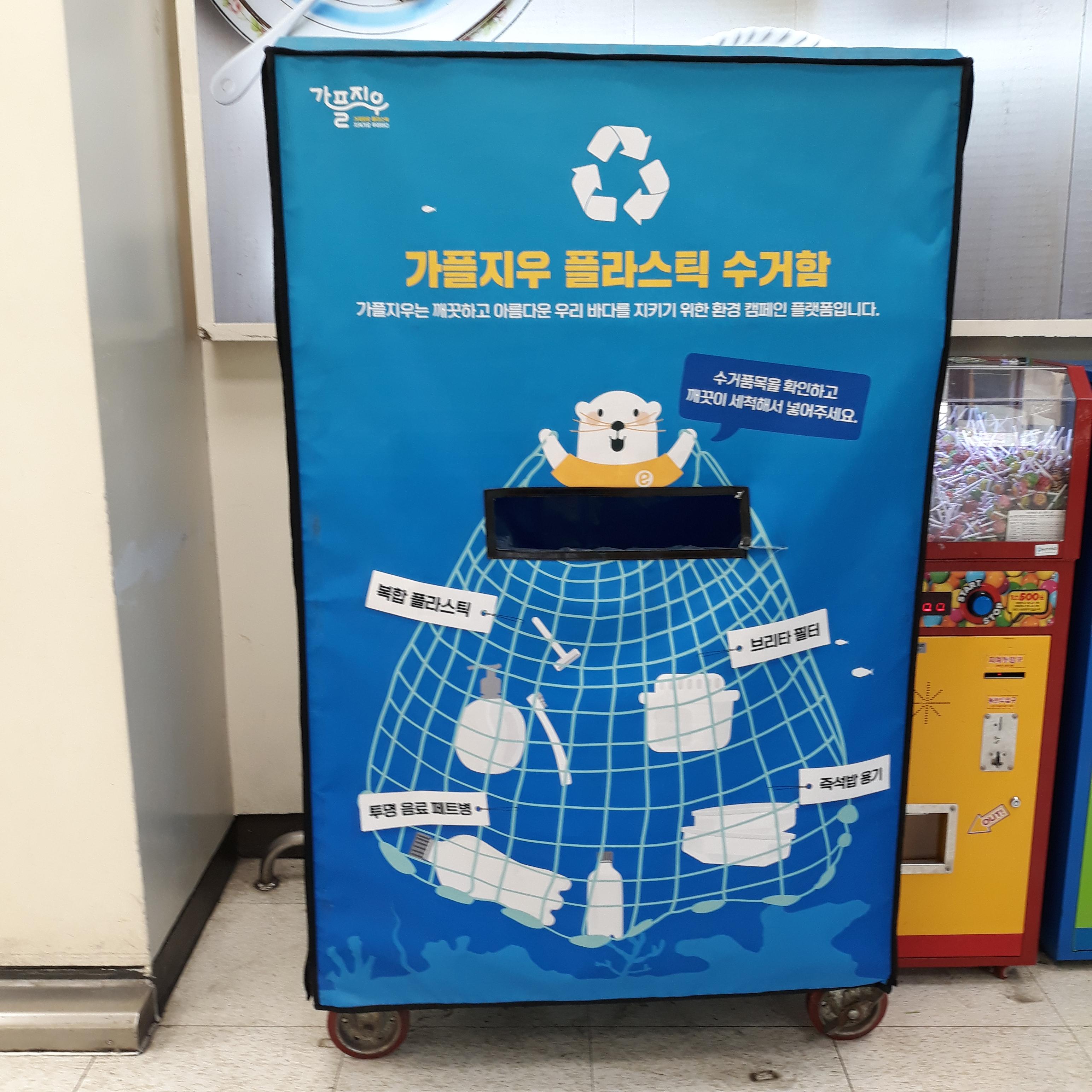 이마트 수원점에 갔다가 1층에서 다소 생소한 수거함을 보았습니다. 수거함의 겉면에 ‘가플지우 플라스틱 수거함’이라고 쓰여 있었습니다. 플라스틱 수거함이라고 하니, 환경을 위해 좋은 일을 하는 수거함인 것 같았는데요. 이 낯선 수거함에 대하여 좀 더 알아보기로 하였습니다.