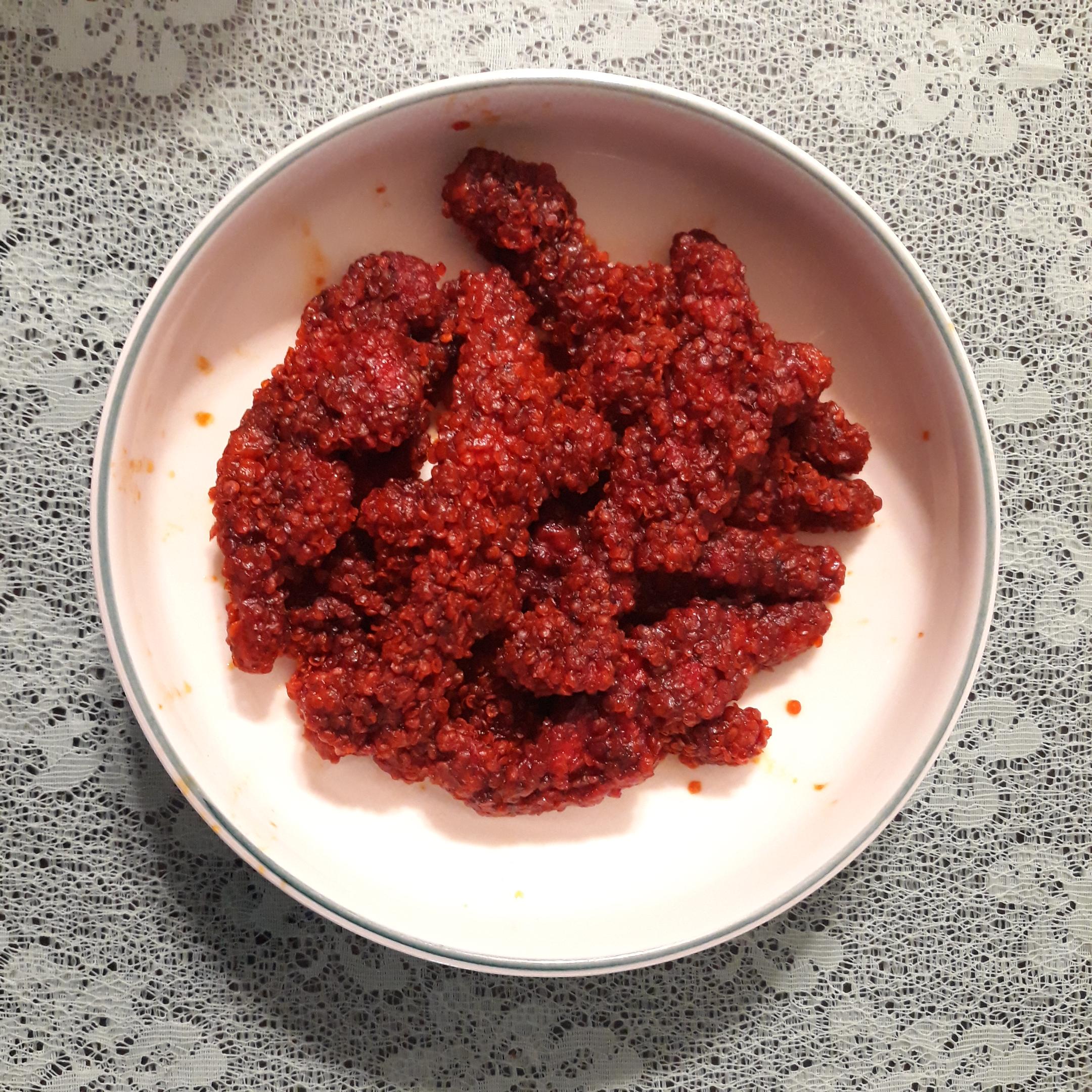 접시에 담고 보니 새빨간색이 더욱더 빨개 보였습니다. 맛을 보니 역시 매웠습니다. 아이들에게는 더 매울 것 같았습니다.