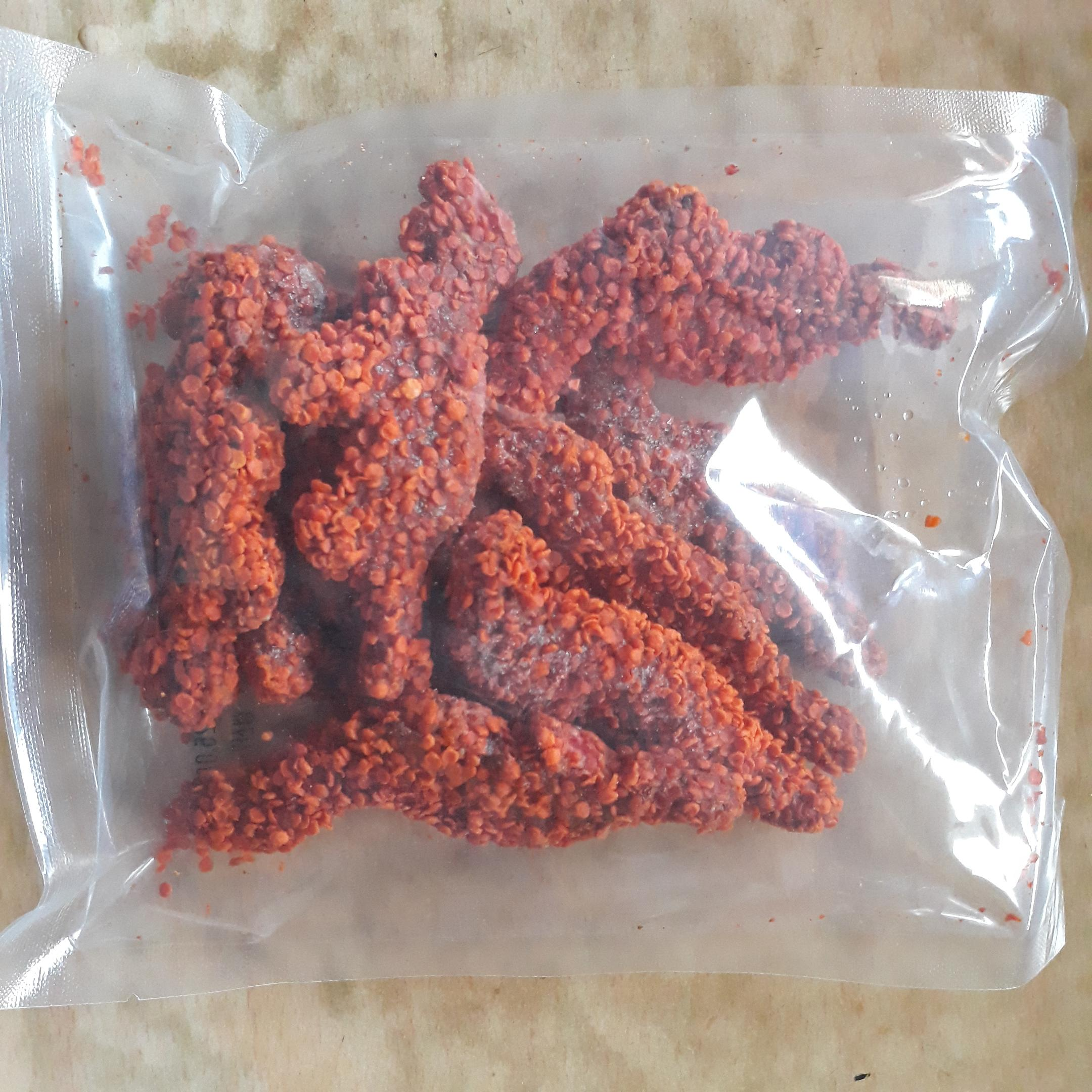 불용가리치킨의 조각들 종이 박스 포장지를 뜯어 보니, 그 안에 비닐 포장지로 치킨 음식이 싸여 있었습니다. 위생적이고 깔끔하게 포장되어 있어서 마음에 들었습니다. 치킨 조각이 8개 들어 있었습니다. 우아, 공룡 모양이었습니다.