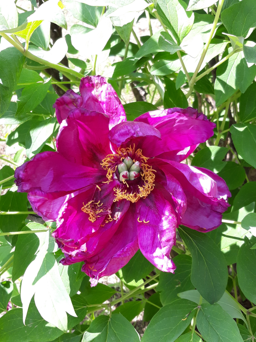 옆에서 본 강렬한 꽃 속 목단화는 추위에 강한 꽃입니다. 하지만 더위에는 연약합니다. 그래서 연평균이 15도 이상으로 날씨가 따뜻한 지역에서는 잘 자라지 못한다고 합니다. 아하, 이곳은 따뜻한 곳이군요.